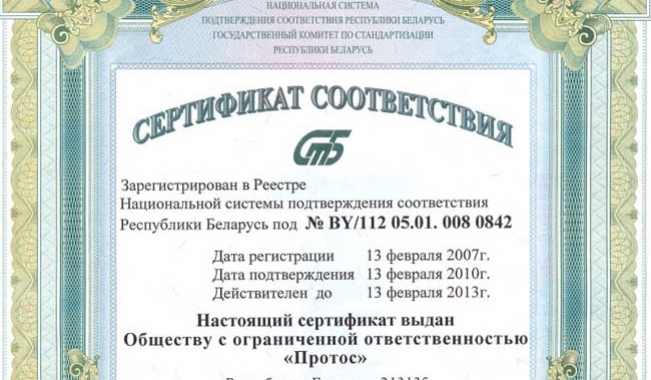 Нам вручен сертификат СТБ ИСО 9001-2001. Компания признана членом БАМАП.