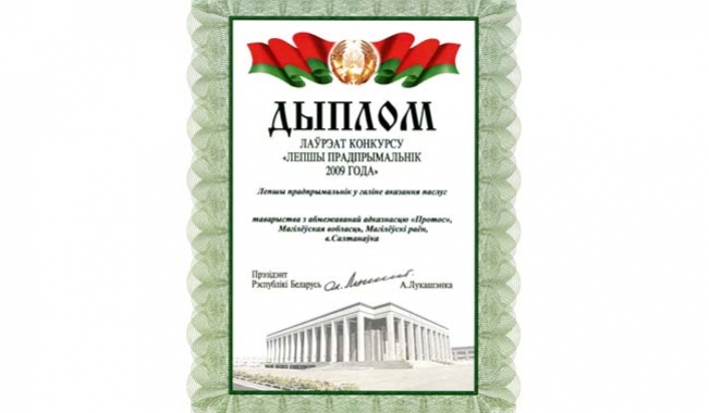 ООО "Протос" - лауреат Республиканского конкурса "Лучший предприниматель".