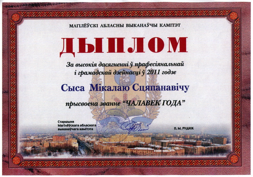 Коллектив холдинга "Группа компаний "Протос" сердечно поздравляет Директора по развитию Сыса Николая Степановича с присвоением ему звания лауреата специальной премии "Человек года" Могилевской области по итогам 2011 года.