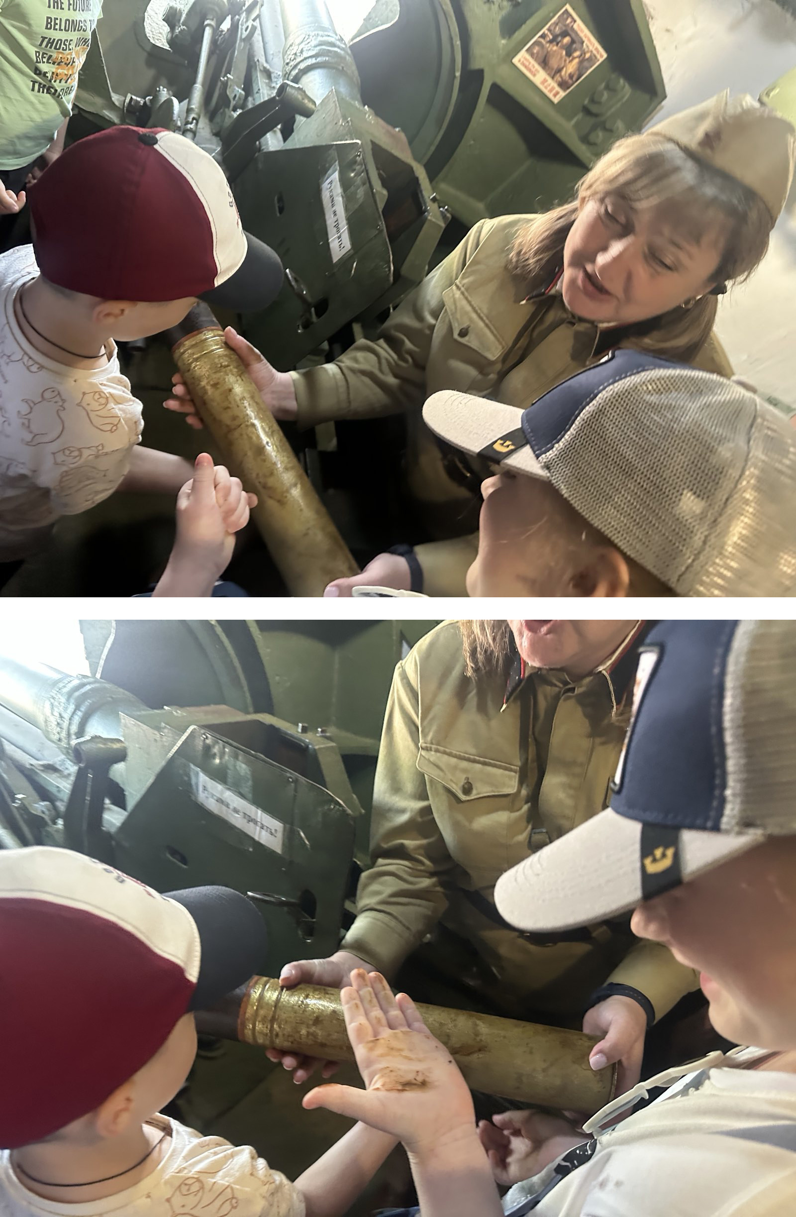 Детям было разрешено не только смотреть, но и трогать руками настоящие раритеты. Особенно яркие впечатления у детей вызвала возможность не просто увидеть, но и прикоснуться к настоящей боевой технике. Восторг в глазах юных посетителей трудно было не заметить, когда они подходили к орудиям, внимательно рассматривали каждую деталь, трогали холодный металл пушек и с воодушевлением задавали вопросы сопровождающему экскурсоводу.