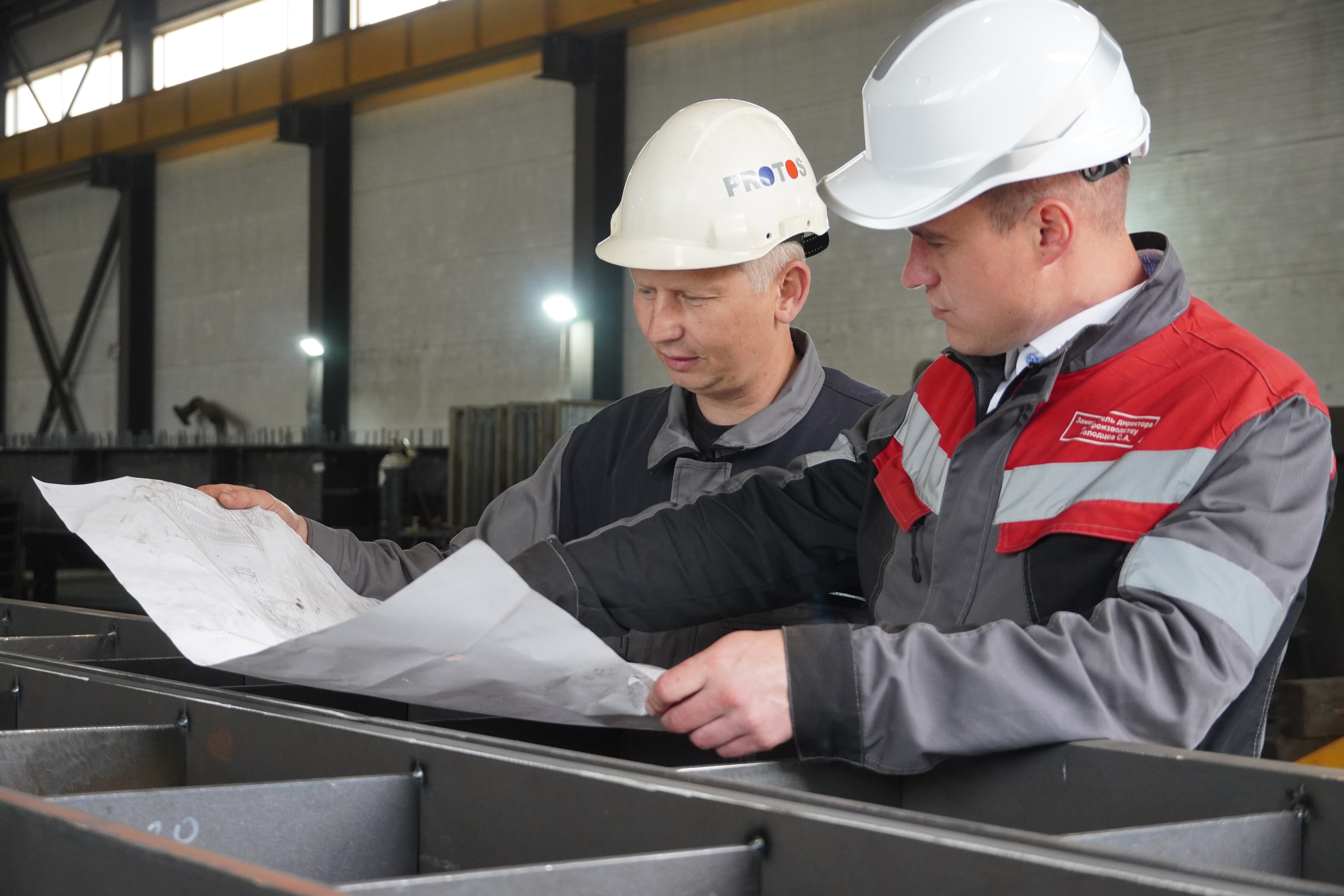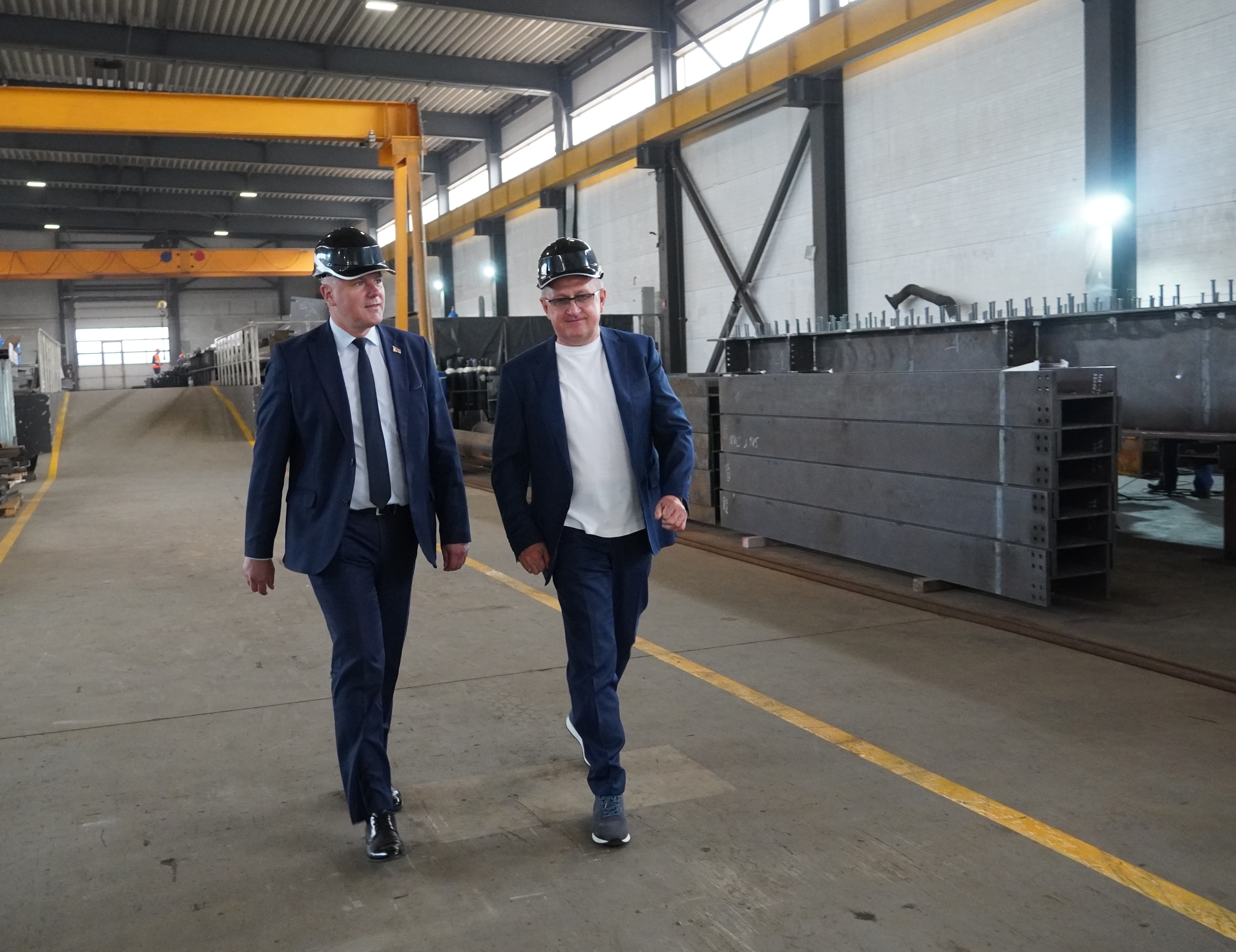 Во время визита Бушлеков Игорь Валерьевич совместно с директором завода Сыса Николаем Степановичем осмотрели производственную площадку и было отмечено, что работы идут строго по графику, а специалисты завода уже приступили к финальной стадии подготовки конструкции.