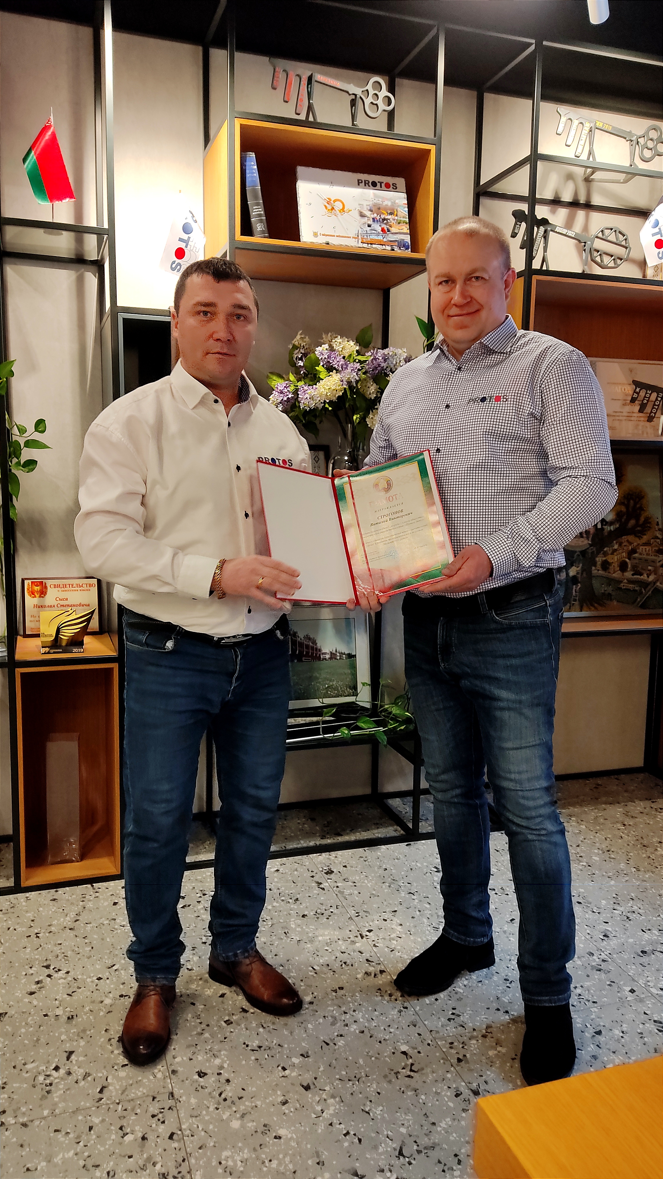 Решением районного исполнительного комитета от 13.12.2022 №24-29, за многолетний добросовестный труд и значительный вклад в развитие промышленности и торговли Могилёвского района, Почётную грамоту вручили Виталию Викторовичу Строгонову, водителю автомобиля 5 разряда 1 класса ООО «Протос Авто».