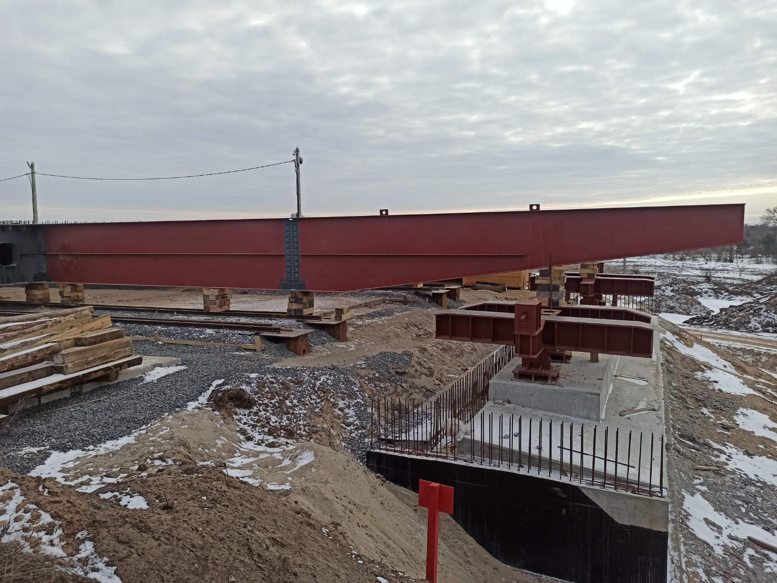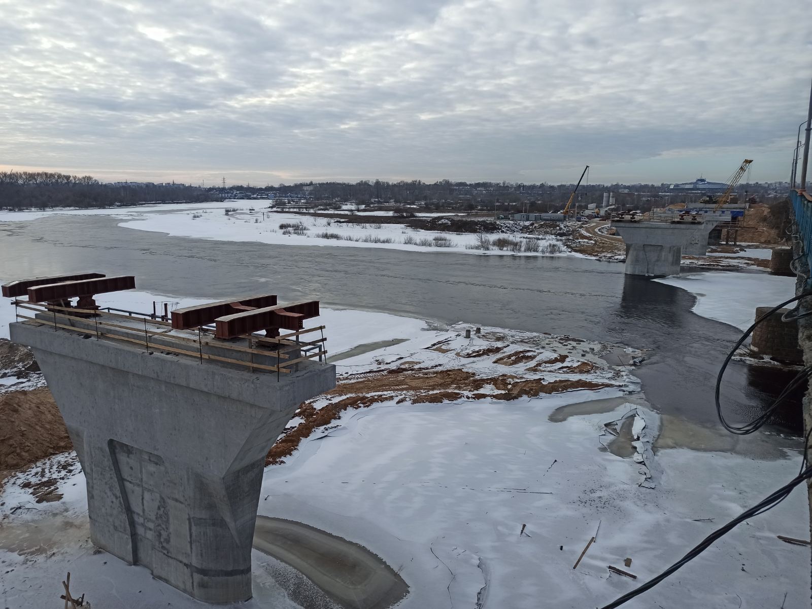 Ведётся сборка металлоконструкций пролётного строения моста через реку Березина, изготовленных заводом «ПРОТОС».