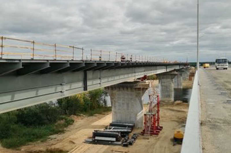 Это крайне важный участок трассы М8/М95 (граница России – Витебск – Гомель – граница Украины). Работы на объекте идут круглосуточно, ударными темпами. Сейчас со стороны агрогородка Бобовичи мостостроители собирают металлические конструкции, которыми в 9 этапов, надвигая с опоры на опору, свяжут берега Сожа.