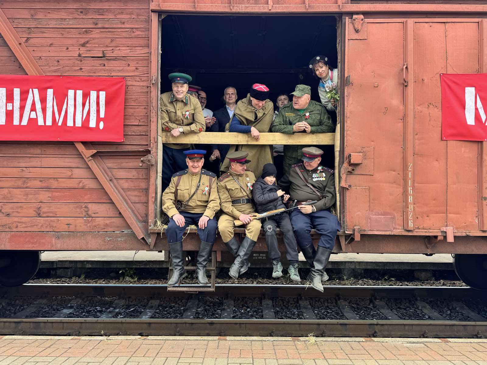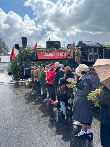Восстановленный локомотив серии «Э» стал центральным элементом мероприятия. Он был стилизован под тот самый паровоз, который в мае 1945 года вёз Победителей на Родину. Именно такие паровозы обеспечивали транспортировку солдат и груза на фронт, а также использовались для перевозки военных, включая знаменитые колонны особого резерва НКПС