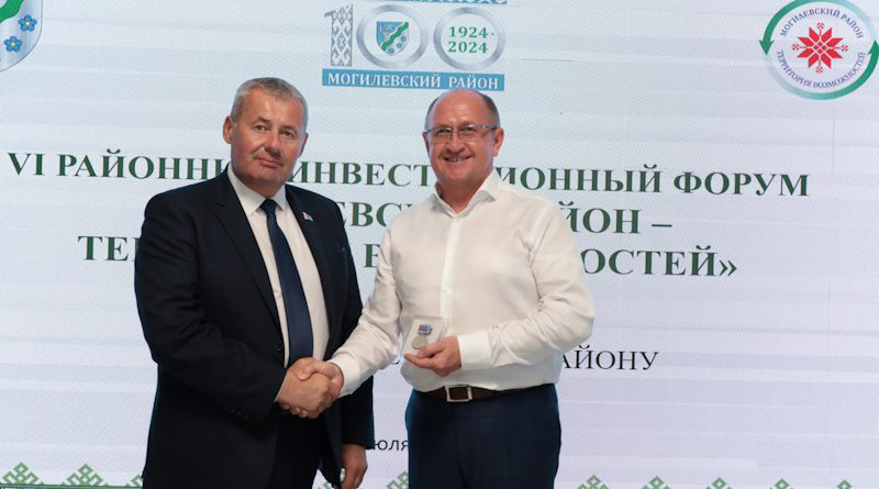 Директору завода «ПРОТОС» Сыса Николаю Степановичу был вручен нагрудный знак в ознаменование столетия со дня образования Могилевского района.